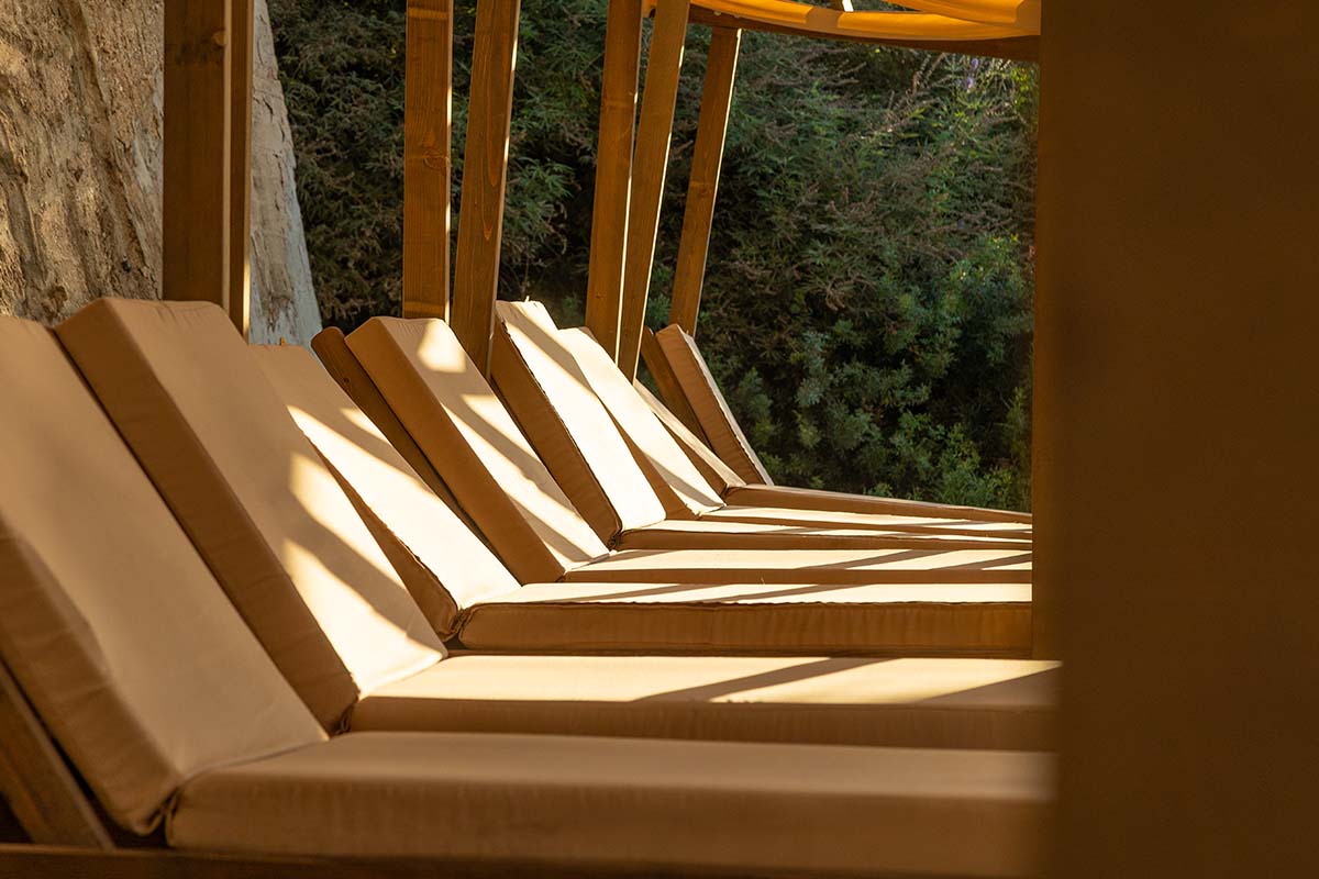 Close your eyes, relax, and enjoy the sun by the deep blue sea, under the umbrellas, on the hotel’s comfortable sunbeds.